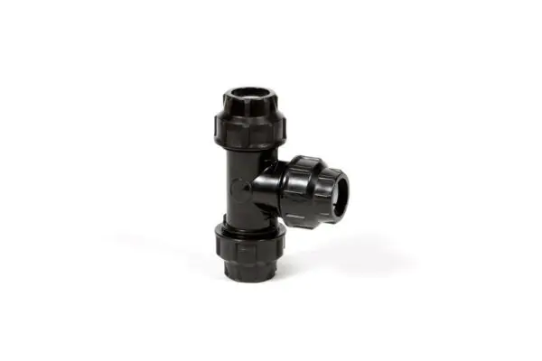 Met dit PE T-stuk van 90 graden kunt u op een PE buis van 90 mm eenvoudig een rechte afsplitsing naar PE 90 mm maken. Het T-stuk is aan alle zijden voorzien van een knelsluiting. Door de knelsluiting kan er eenvoudig een dichte verbinding worden gemaakt. Het T-stuk 90 graden is geschikt voor een druk tot 10 bar en voorzien van een KIWA keur.