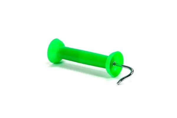 Poortgreep voor het eenvoudig en veilig openen en sluiten van een electrische schrikafrastering. De poortgreep heeft een opvallende neon groene kleur en is geschikt voor zowel schrikdraad, schrikkoord als schriklint.