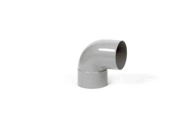 PVC bocht van 90 graden welke op een PVC buis van 90 mm past. De bocht is aan 1 zijde voorzien van een lijmmof. De andere zijde van de 90 graden bocht is een spie. De spie past in een ander PVC hulpstuk van 90 mm met een lijmmof. De 90 graden bocht is geschikt voor hemelwaterafvoer en is voorzien van een KOMO keur.