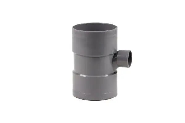 Met dit PVC verloop stroom T-stuk van 90 graden kunt u op een PVC buis van 50 mm eenvoudig een schuine afsplitsing naar PVC 40 mm maken. In de afsplitsing zit een kleine stroombocht. Het T-stuk is aan alle zijden voorzien van een lijmmof. Het stroom T-stuk 90 graden is voorzien van een KOMO keur.
