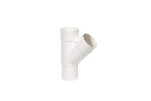 Met dit witte PVC T-stuk van 45 graden kunt u op een hemelwater afvoerbuis van 100 mm eenvoudig een schuine afsplitsing naar PVC 100 mm maken. Het T-stuk is aan 1 doorgaande zijde en de afsplitsing voorzien van een lijmmof. De andere doorgaande zijde is voorzien van een verjongde spie. De verjongd spie zijde past direct in de PVC buis van 100 mm. Het T-stuk 45 graden is voorzien van een KOMO keur.