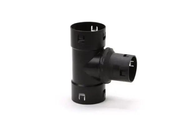 Met dit PP verlopend T-stuk 90° kunt u op een drainbuis van 100 mm eenvoudig een haakse afsplitsing van 65 mm maken. Dit T-stuk is aan alle zijden voorzien van kliksluitingen. Hiermee is gemakkelijk en snel een sterke verbinding te maken.