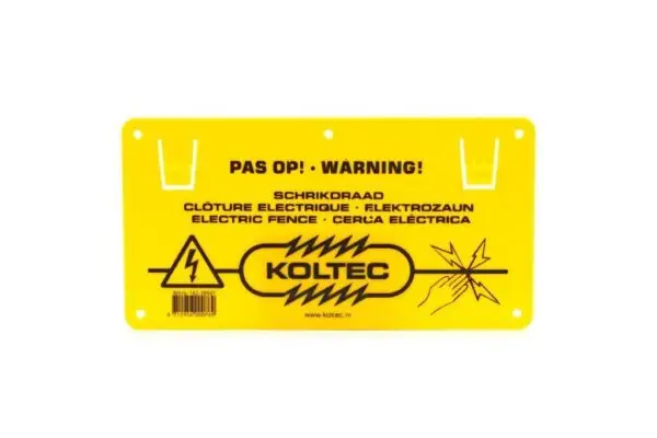 Geel waarschuwingsbord om personen te waarschuwen voor een schrikafrastering. Een afrastering met schrikdraad of schriklint aan de openbare weg moet om de 50 meter zijn voorzien van een waarschuwing (wettelijk verplicht). Het schrikafrastering waarschuwingsbord kan op verschillende manieren aan de afrastering worden bevestigd.