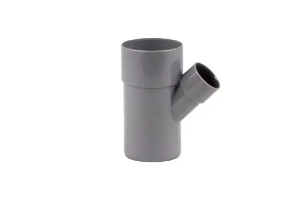 Met dit PVC verloop T-stuk van 45 graden kunt u op een PVC buis van 110 mm eenvoudig een schuine afsplitsing naar PVC 40 mm maken. Het T-stuk is aan 1 doorgaande zijde en de afsplitsing voorzien van een lijmmof. De andere doorgaande zijde is voorzien van een spie. De spie past in een ander PVC hulpstuk van 110 mm met een lijmmof. Het T-stuk 45 graden is voorzien van een KOMO keur.