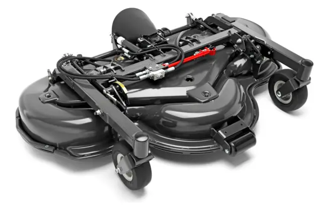 Krachtig combideck van 155 cm (61\\”) met hydraulische maaihoogteverstelling. Een innovatieve technische oplossing van Husqvarna resulteert in een combinatiedek met de maaimethoden mulchen en uitworp achter in één en hetzelfde dek. Zwaar uitgevoerd maaidek uit 1 stuk gestanste staalplaat met een afmeting van 4,5 mm (7-gauge). Aangedreven as met kegelwieloverbrenging. Voor het aanbouwdeel is hydraulische kit nodig.