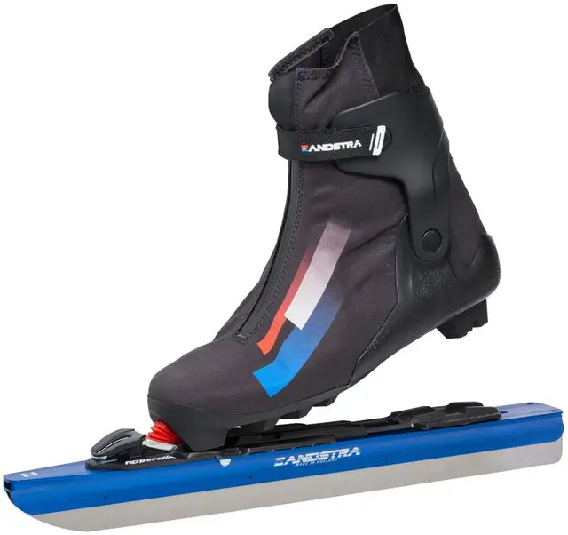Deze Cross Country schoen is door Zandstra specifiek ontworpen vanuit het oogpunt van schaatsen. Door de speciaal ontworpen cuff, een extra stijve zool en een anatomische binnenzool, geeft dit extra stabiliteit en comfort tijdens het schaatsen. Verder heeft de schoen een laag gewicht, zorgt de Free Heel Counter voor optimale steun en pasvorm van de hiel en zijn de kunststof gedeeltes versterkt met glasvezel. Tenslotte is de beschermende buitenkant lichtgewicht, elastisch, ademend en waterdicht en voorkomt het 45 graden vetersysteem rotatie van de voet in de schoen. Schaats De Zandstra Nordic Race 4163 wordt geleverd met hetNordiconderstel. Deze schaats bestaat uit een aluminium frame, wat deze erg licht van gewicht maakt. De binding is traploos verstelbaar. De unieke bevestiging van de binding op de schaats is gepatenteerd (Patent: 1031965). De Rottefella skate binding heeft een extra stijve flex, speciaal ontwikkeld voor het schaatsen. De torsiestijfheid in combinatie met het hoogwaardige RVS staal (60Rc) maken deze schaats ideaal voor lange tochten op het ijs, zelfs de Elfstedentocht! Geschikt voor zowel natuur- als kunstijs.
